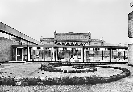 Im Hintergrund (Glasgang): eine Arbeit von Daniel Buren